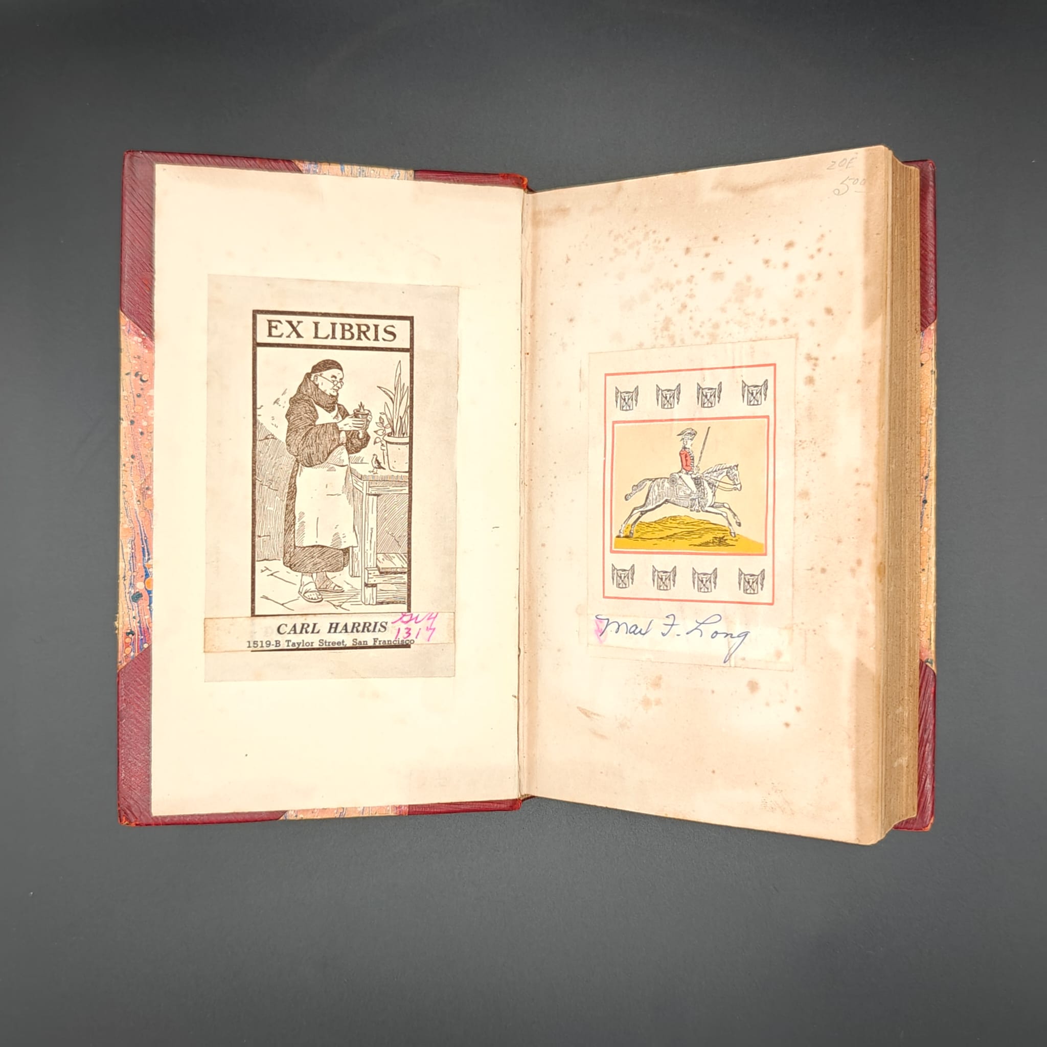 Bookseller stamp, S. F. Occult Book Co. to title page. Later owner's early 20th century binding in red half calf with marbled boards, and colored silk end bands, no binders stamp. Leather has discolored fly leaves.