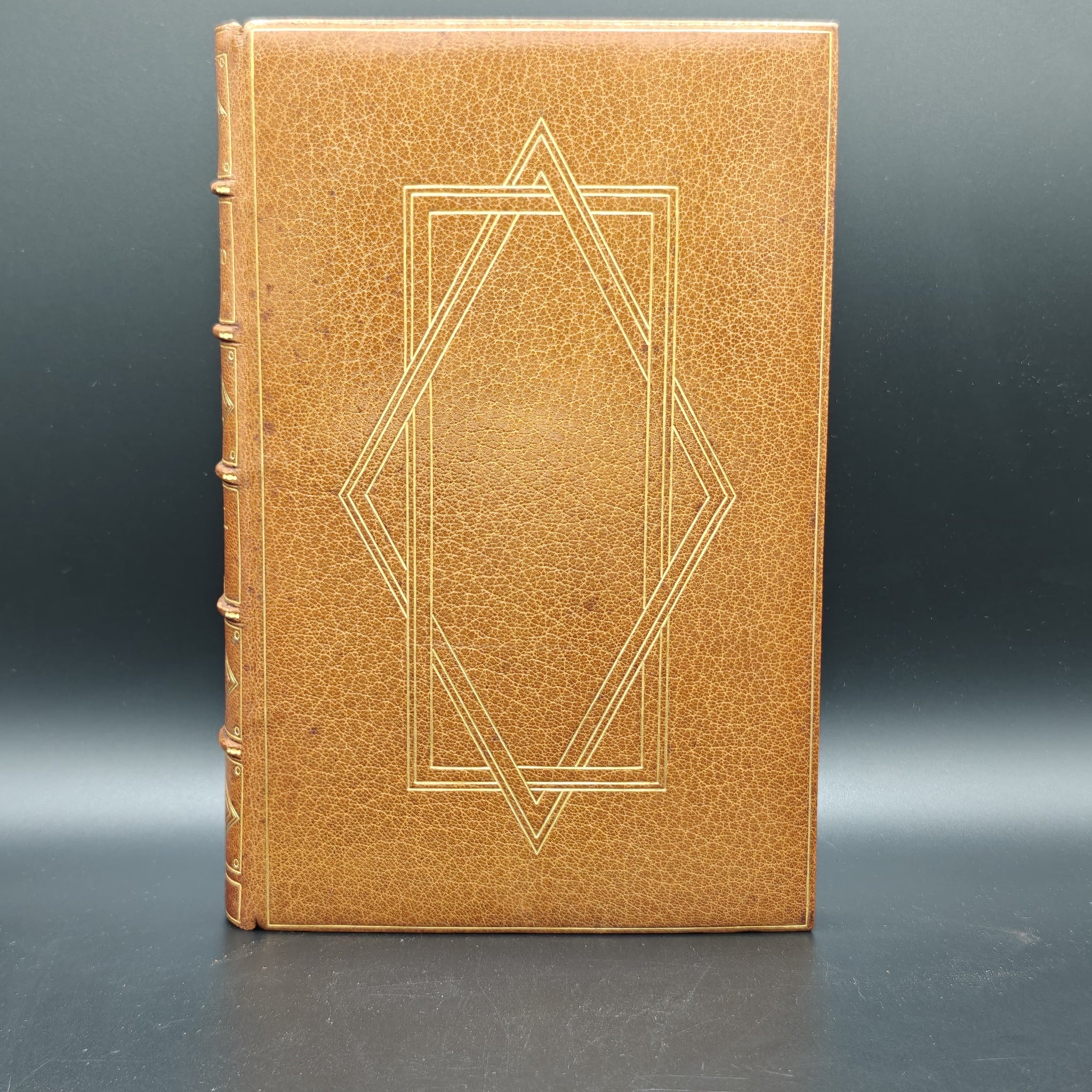 FIRST ED. (230 x 150 mm) V. 1: [2], half title, title, 360, [2]; V. 2: [2], half title, title, 387, [2]. Red historiated initials. Ornate title pages by T. M. Cleland. Each vol. contains 20 illustration; however, the binder has incorperated approximately 60 additional copper and steel plates drawn from historic sources ranging from certainly the 17th-19th centuries, possibly as early as the 16th c., some are finely and delcately hand coloured (complete list available). Bound in full calf with gilt line work on covers and spine; title, author, date in spine panels. Fore edges fully gilt, and gilt gaufferings around edges. Leather fold ins with gilt and black stamping. Purple marbled endpapers. Both marked Stewart Kidd Cincinnati at top and Bayntun Binder Bath Eng at bottom. Both have red silk-like book marks. NEAR FINE condition.