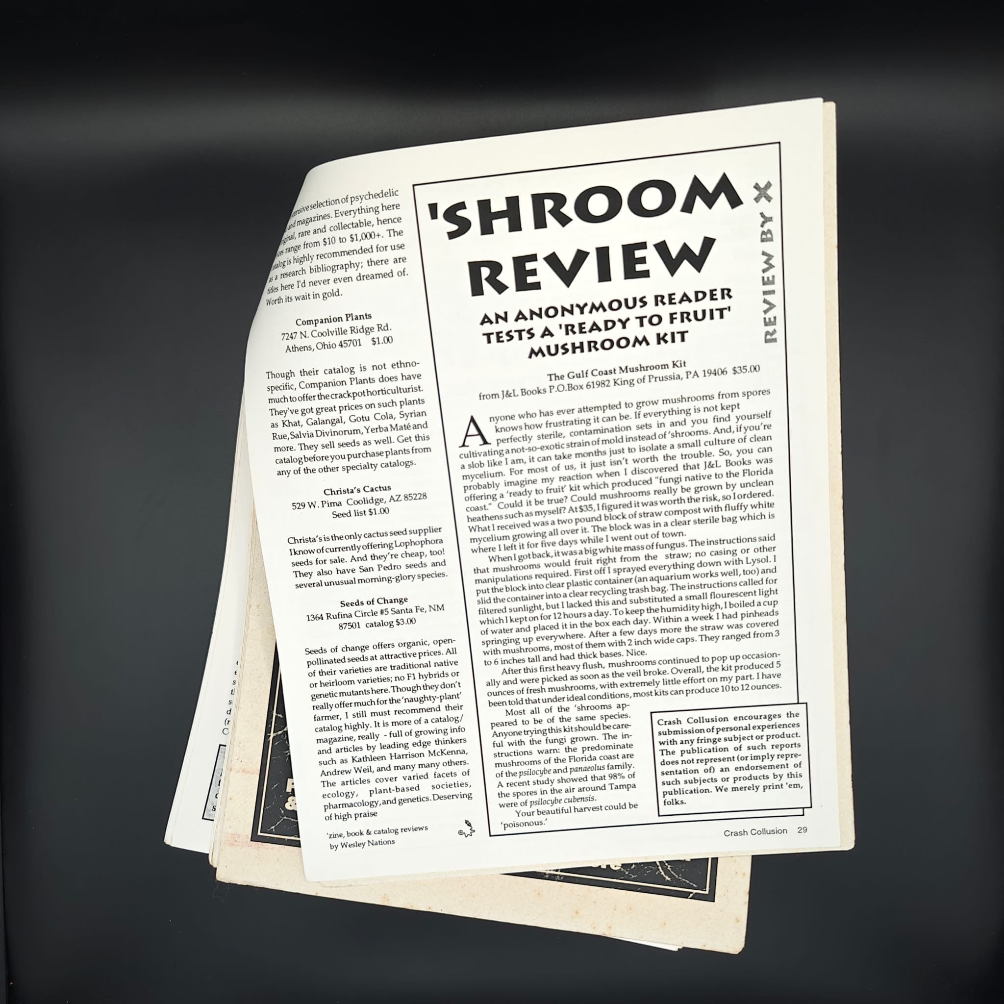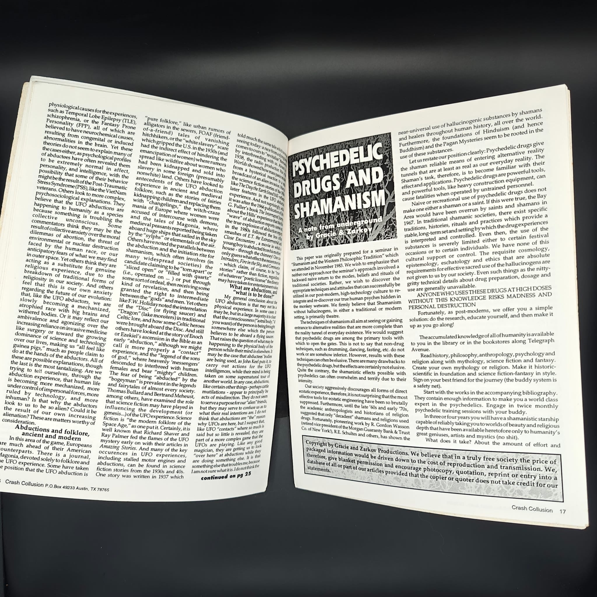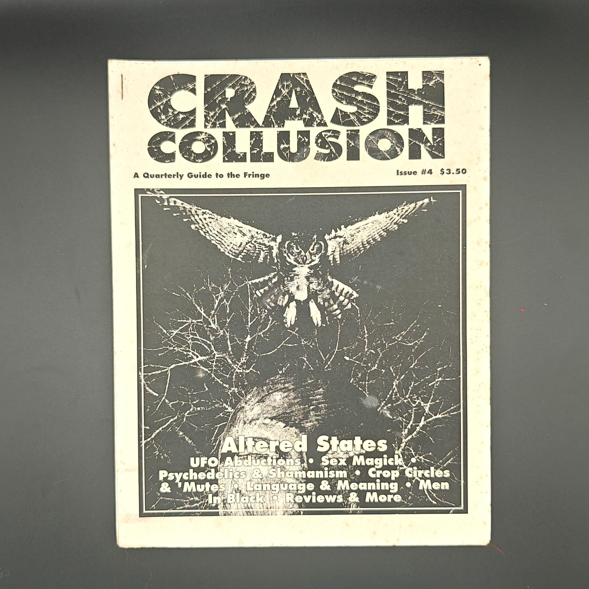 pp. 31. Yet another wierd Crash Collusion, a zine promising Altered States, UFO abductions, Sex Magick, Psychadelics & Shamanism, Crop Circle & 'Mutes, Langauge & meaning, men in black, reviews and much more. Single stapled bound, black and white, illustrations throughout.