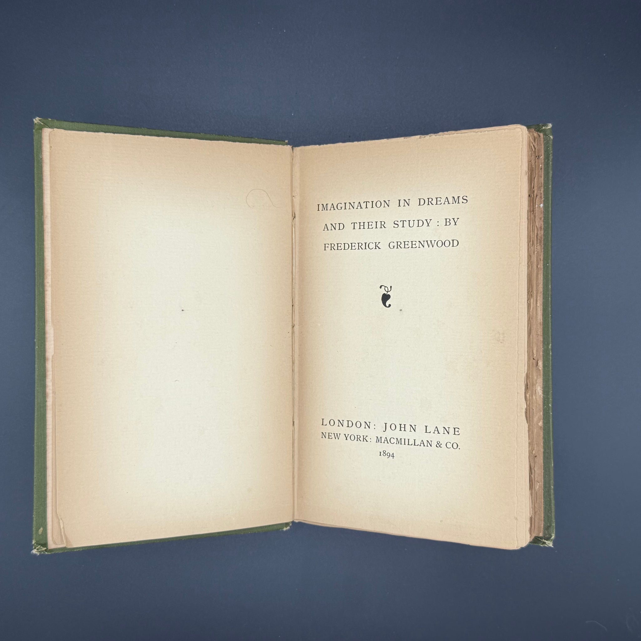 Frederick Greenwood. Imagination in Dreams and Their Study. London: John Lane, 1894.