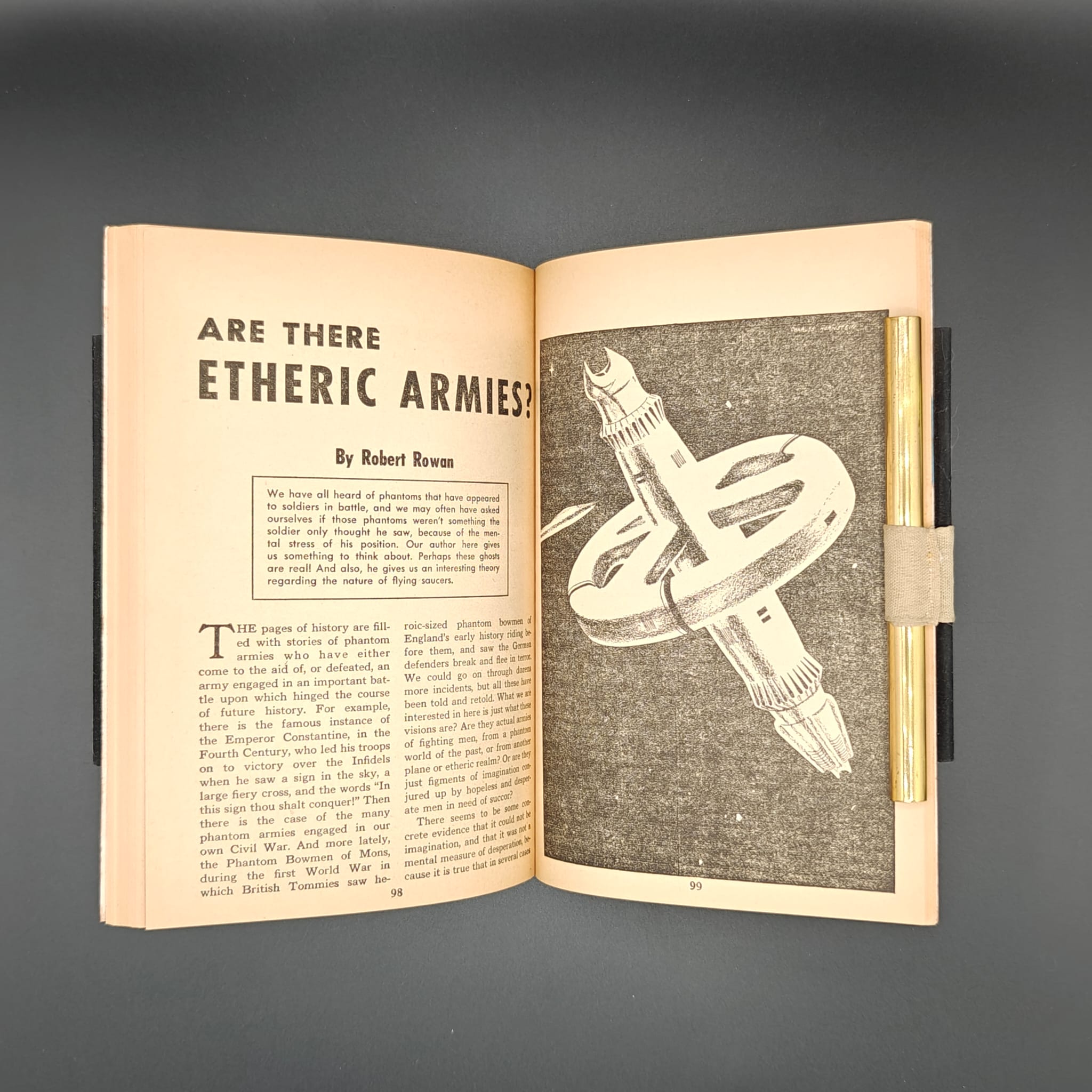 Features include Flying Saucer Predicts Third World War, Are there Etheric Armies?; Tales of Psychic Attack! Possession! Prophecy!; and, Articles on Mystic Science, True Mystic Adventures that Will Amaze You