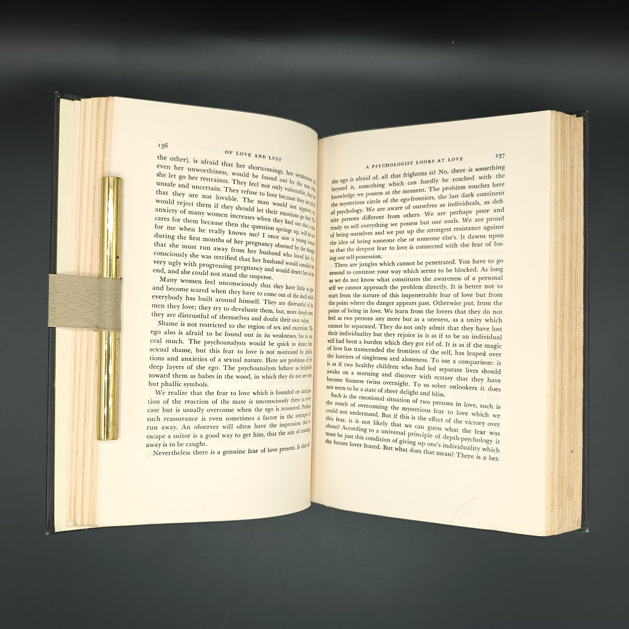 Of Love and Lust: On the Psychoanalysis of Romantic and Sexual Emotions is a 1957 book by psychoanalyst Theodor Reik that explores love and sexuality from a psychoanalytic perspective, distinguishing between lust (seeking pleasure) and love (seeking joy and happiness). Reik's work offers a less conventional, more accessible analysis than some of his contemporaries, focusing on how self-regard forms the basis for loving and examining topics like marriage shyness and the emotional differences between sexes.