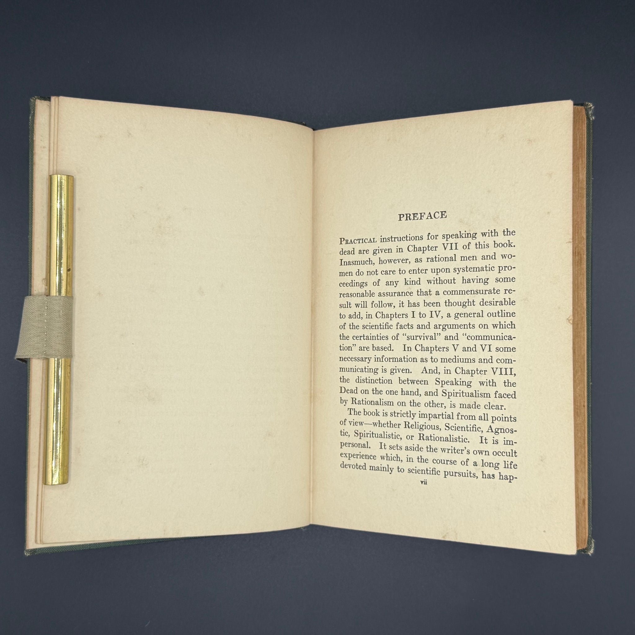 Moving fluidly between telepathy and speculative metaphysics, the work probes the nature of the spirit itself, deliberately inhabiting the liminal space between rational philosophy and spiritualist belief. At once a practical manual for communicating with the dead, a philosophical meditation on unseen forces, and a pointed engagement with theories fiercely debated in its own moment, Sciens writes in opposition to what he regarded as the naïveté and excesses of contemporary mysticism—seeking not to sensationalize the séance, but to discipline it.