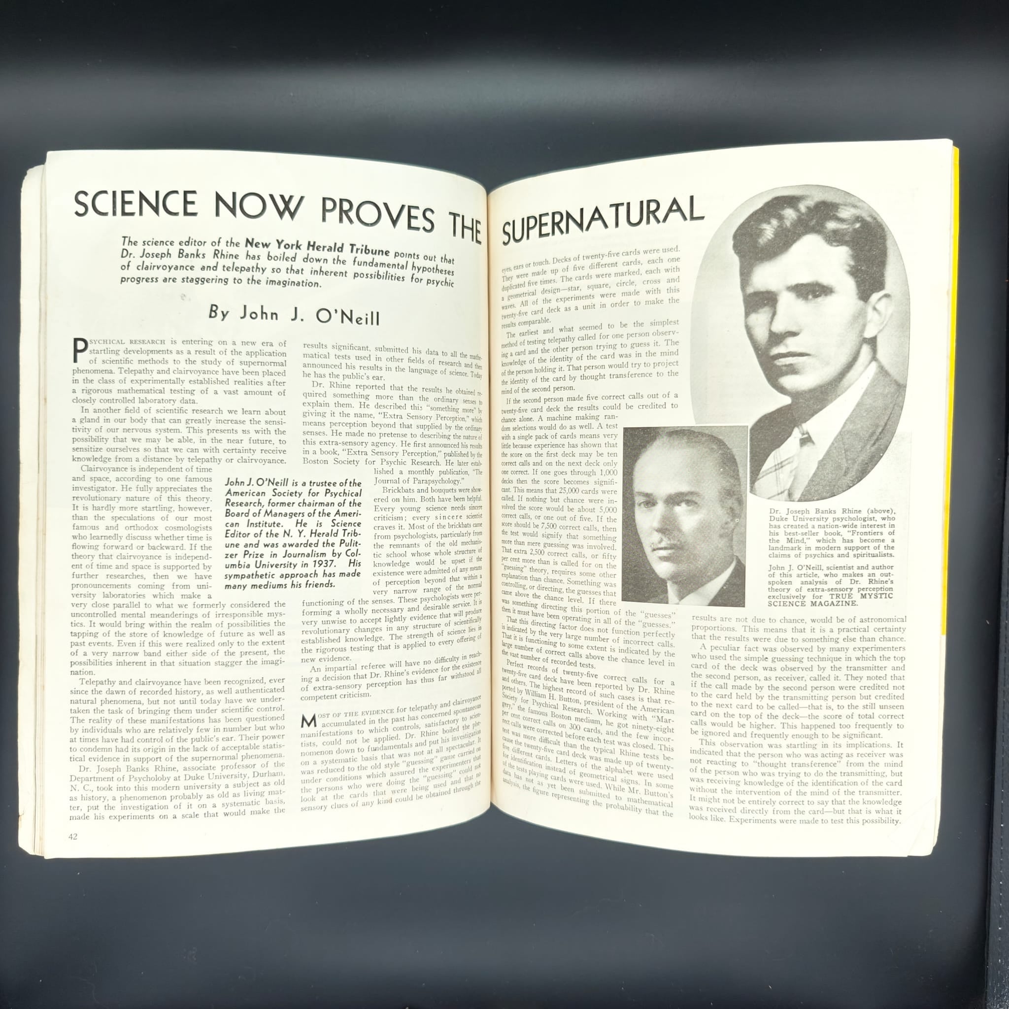 First volume of True Mystic Science, the short-lived fringe pulp magazine, which consists of 8 total volumes (November 1938 – July 1939). This issue features "of its day" ethnography, handwritting analysis & palmistry, astrology, the third eye, & a $1,000 prize for a pyschic experience contest.